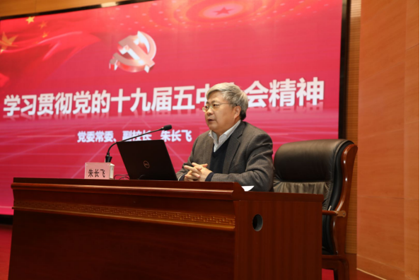 朱长飞介绍了党的十九届五中全会召开的基本情况,从准确把握决胜全面建成小康社会取得决定性成就、准确把握《建议》的核心要义、准确把握《建议》的主要内容、准确把握《建议》对科技创新和人才培养的新要求等4个方面,对党的十九届五中全会精神进行全面系统的讲解。朱长飞指出,深入学习贯彻党的十九届五中全会精神,是我们当前和今后一个时期的重要政治任务。各院级党组织要高度重视,层层压实责任,结合自身实际,通过多种多样的形式,开展丰富多彩的基层宣讲活动,确保将全会精神传达到每一位师生员工,同时要结合“十四五”规划,认真组织研讨座谈,用习近平总书记的重要讲话和党的十九届五中全会精神引领学校各项事业发展。