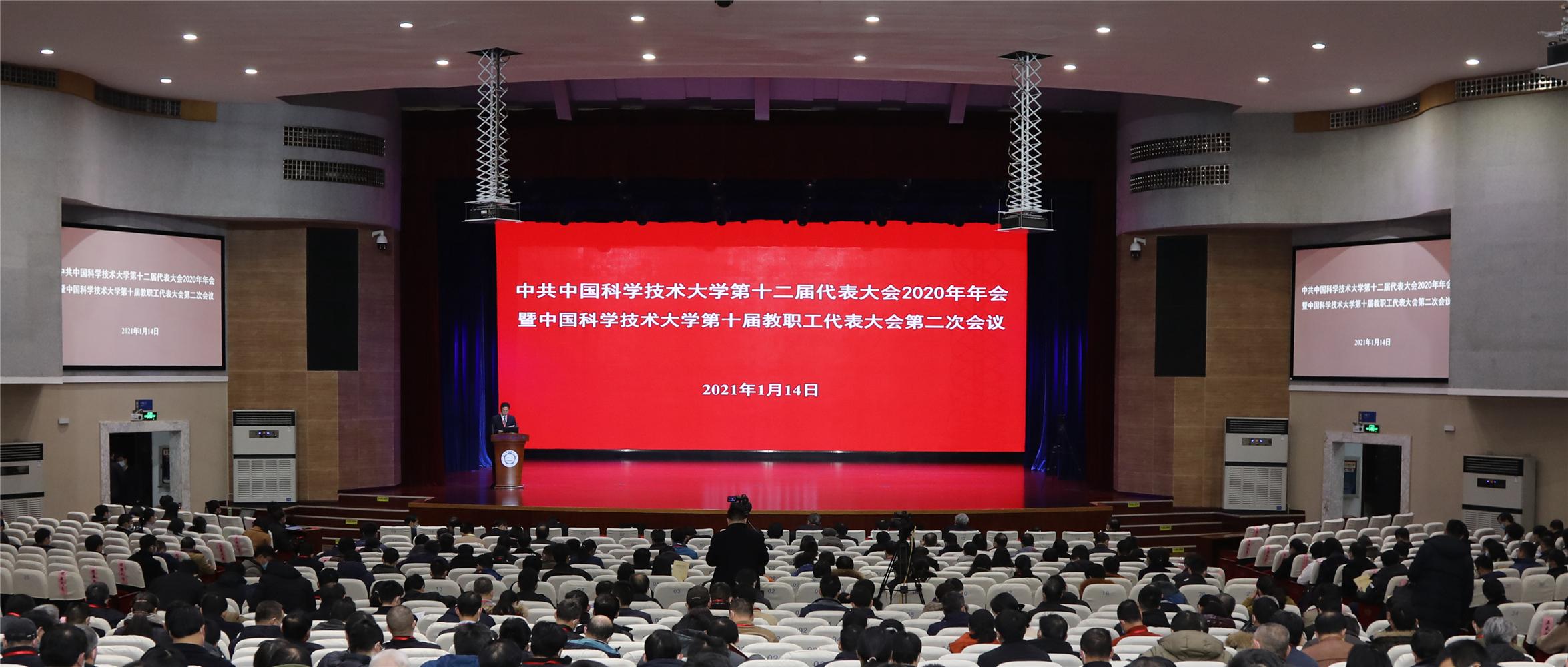 1月14日下午,中共中国科学技术大学第十二届代表大会2020年年会暨第十届教职工代表大会第二次会议(以下简称“两代会”)在东区大礼堂开幕。校党委书记舒歌群、校长包信和院士等在校校领导出席会议并在大礼堂前排就坐,大会常务主席、校党委常务副书记蒋一主持会议。“两代会”正式代表、特邀代表和列席代表,非“两代会”代表的中层领导干部参加大会。