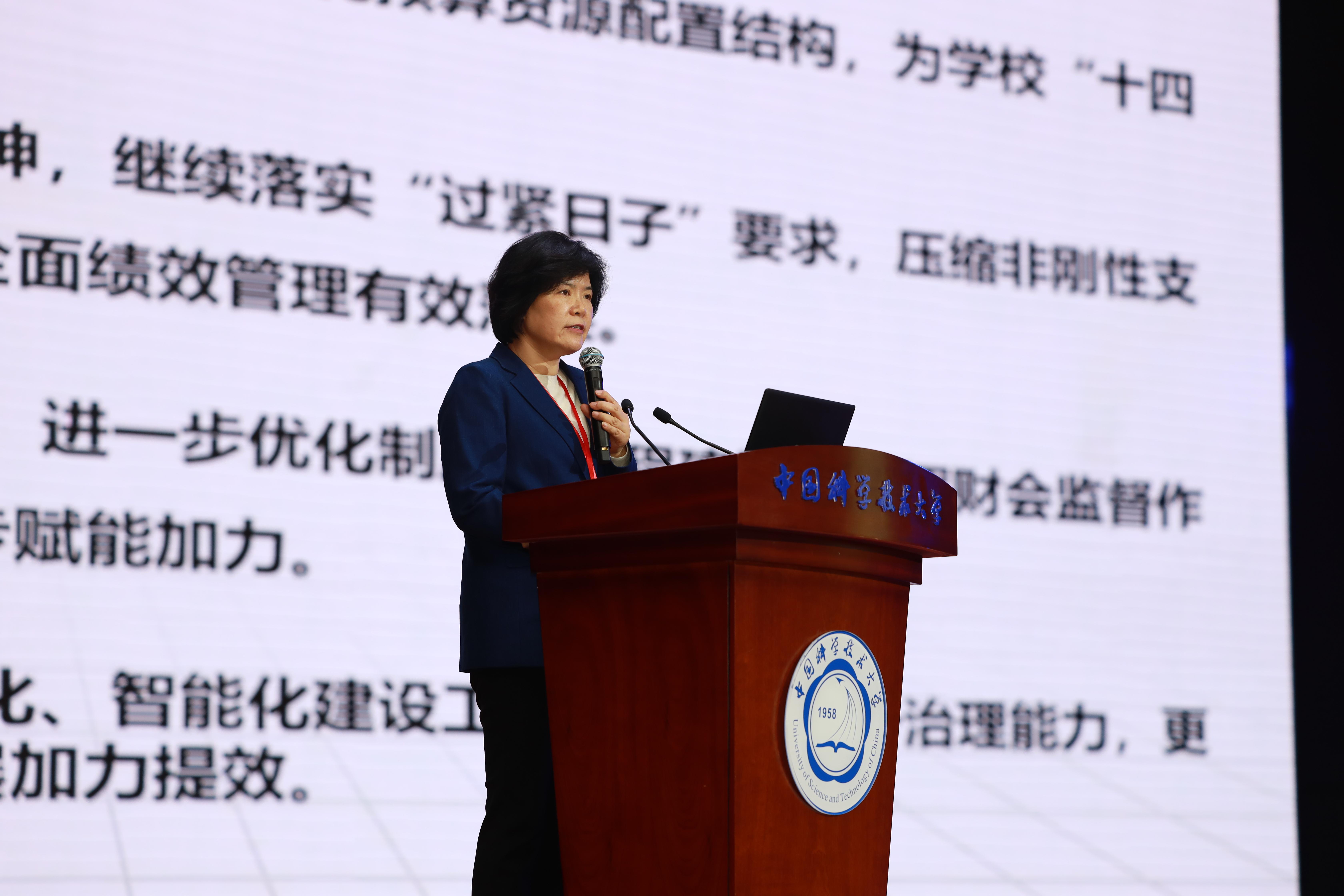 包信和从“面向潜心立德树人的人才培养体系”“面向执着攻关创新的科研体系”“促进成果转化和社会服务”“建设美丽校园、创造一流环境”等四个方面总结了学校“十三五”期间完成的主要工作。包信和指出,“十三五”期间,学校各项事业取得了可喜成绩:本科生招生形势良好,研究生招生实现规模和质量双提升;学校坚持人才强校、打造一流师资队伍;坚持“四个面向”,参与重大科学工程,原创性成果不断涌现,重大项目具有较强竞争力,科研经费持续增长,高水平论文不断增加,自然指数排名持续上升;坚持开放办学、国际化水平稳步提升,建成完善的国际合作体系;面向经济主战场,深入推进科技成果转移转化;开放办学,多方筹措资源;实施民生工程,增强师生幸福感;办学经费和资产稳步增长,办学声誉显著提升,“十三五”规划设定的关键指标均实现。