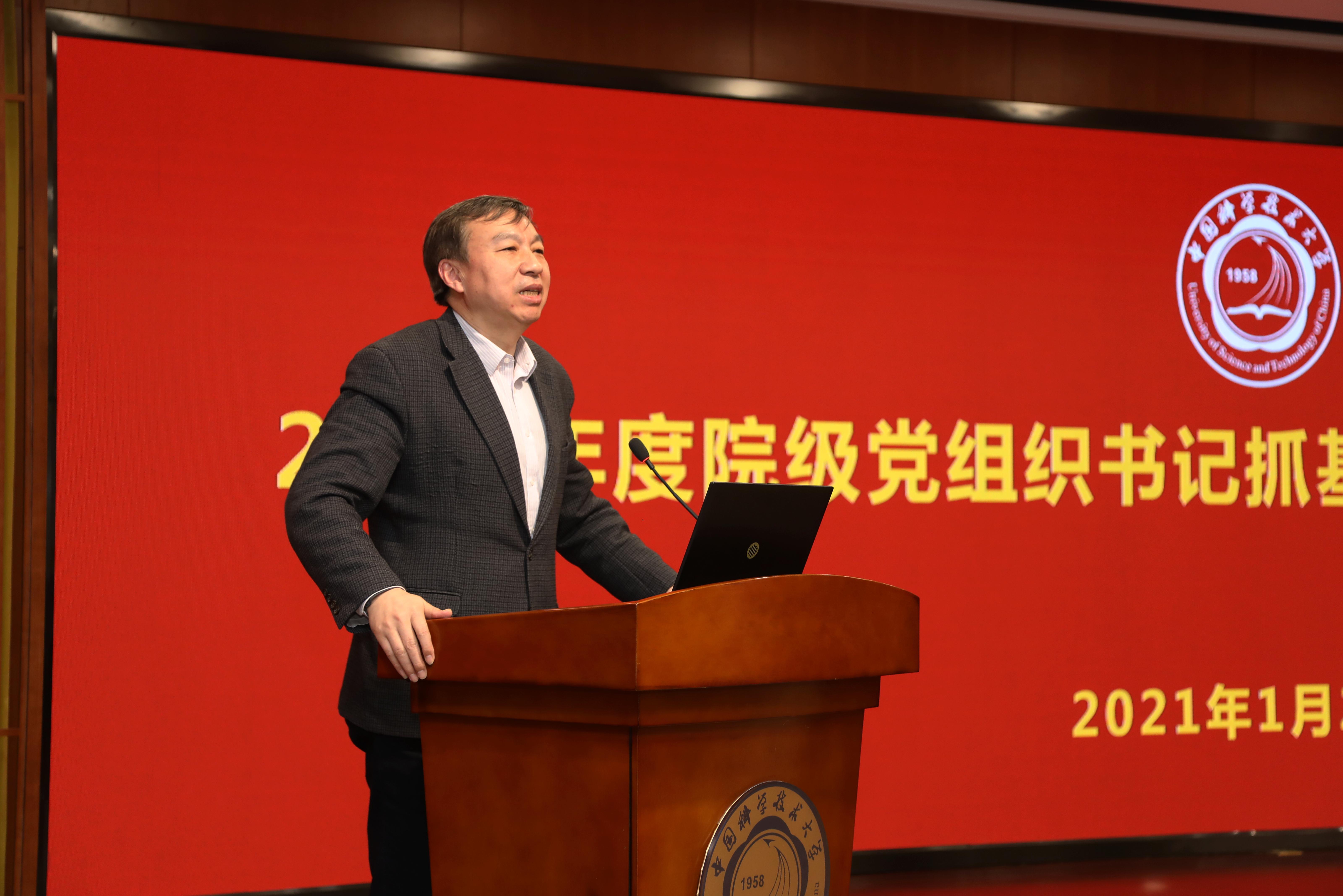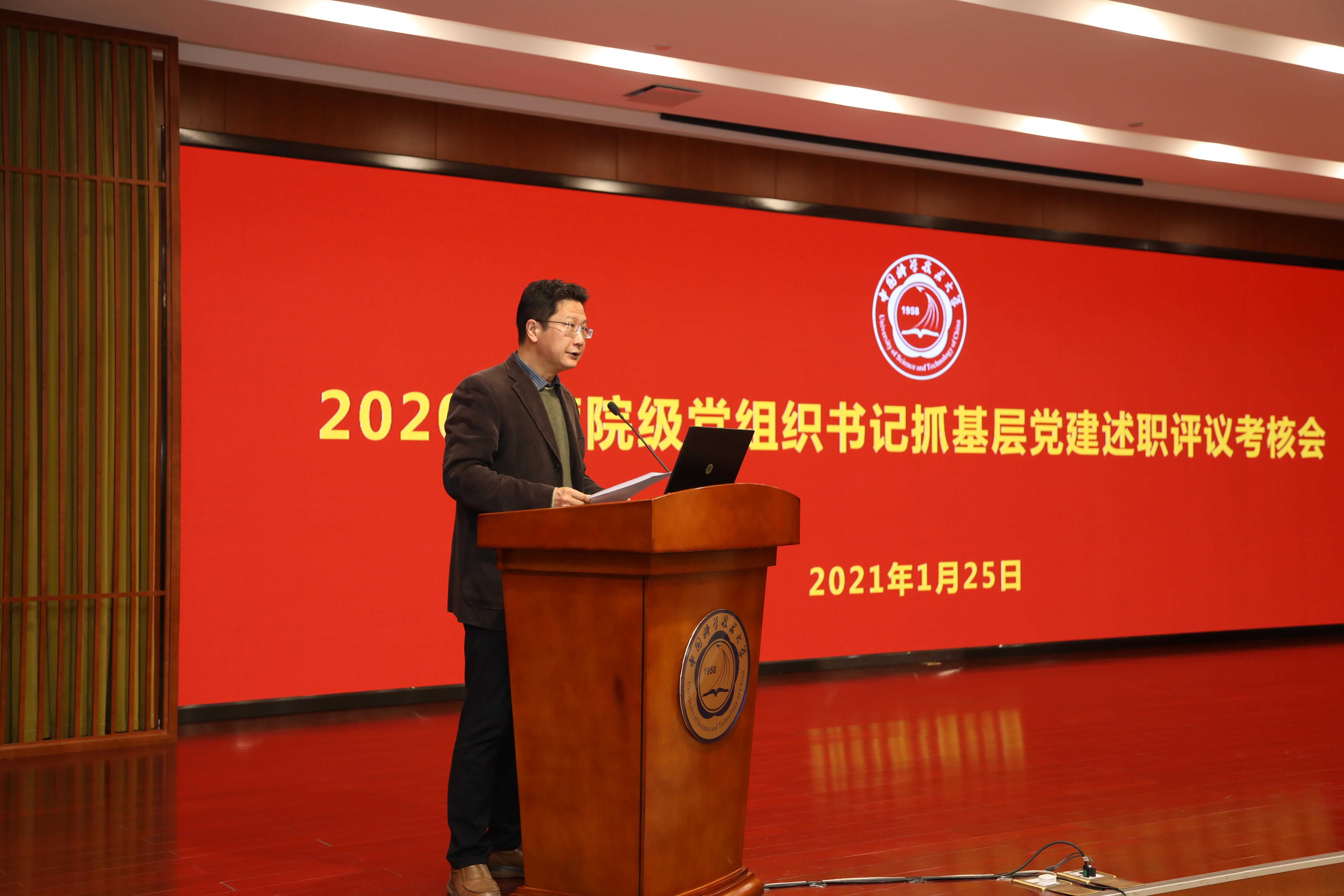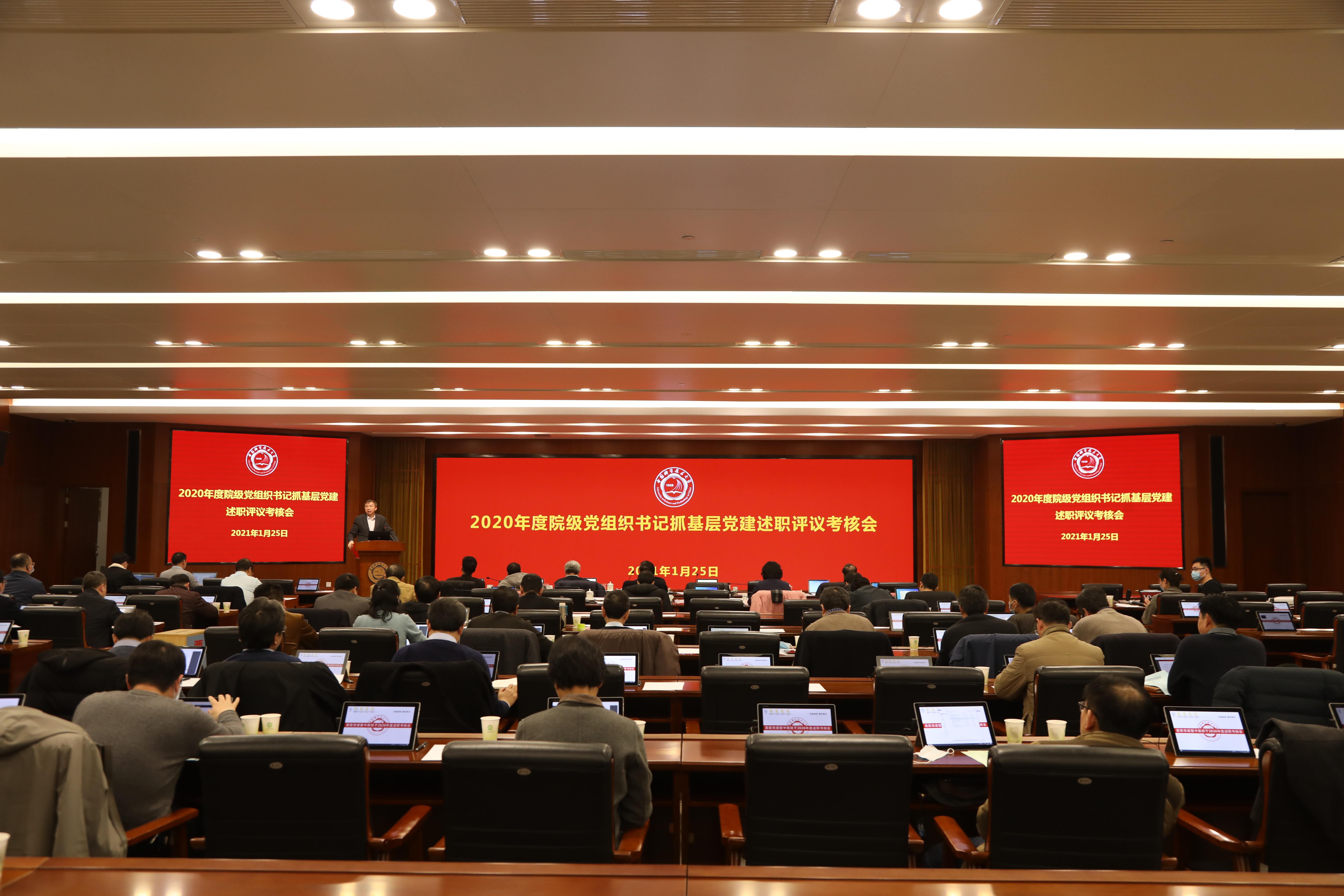 为深入贯彻落实习近平新时代中国特色社会主义思想和党的十九届四中、五中全会精神,切实履行管党治党主体责任,进一步巩固深化“不忘初心、牢记使命”主题教育成果,1月25日上午,学校在东活五楼报告厅召开2020年度院级党组织书记抓基层党建述职评议考核会。党委书记舒歌群出席会议并逐一进行了点评,会议由党委常务副书记蒋一主持,在校校领导、机关相关部门主要负责人、院级党组织党政主要负责人参加了会议。