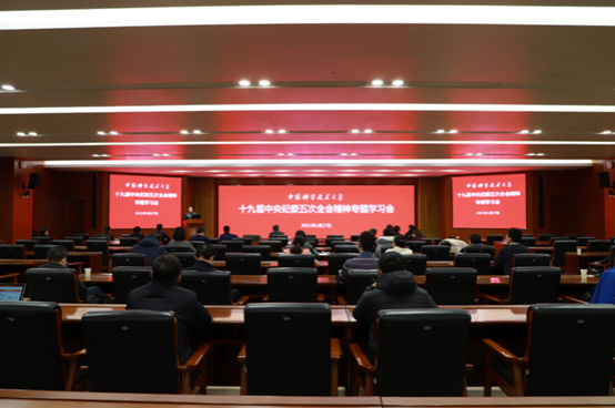 中国共产党第十九届中央纪律检查委员会第五次全体会议,于2021年1月22日至24日在北京举行。毕金初在北京列席了会议。在校内学习传达会上,毕金初传达了习近平总书记在五次全会上的重要讲话精神和赵乐际同志代表中央纪委常委会所作的工作报告精神,领学了五次全会会议公报。毕金初指出,习近平总书记的重要讲话充分肯定过去一年全面从严治党取得的新的重大成果,深刻阐述了全面从严治党的新形势新任务,讲话高屋建瓴、思想深邃、内涵丰富,具有很强的政治性、思想性、指导性,是推进全面从严治党向纵深发展的重要遵循。