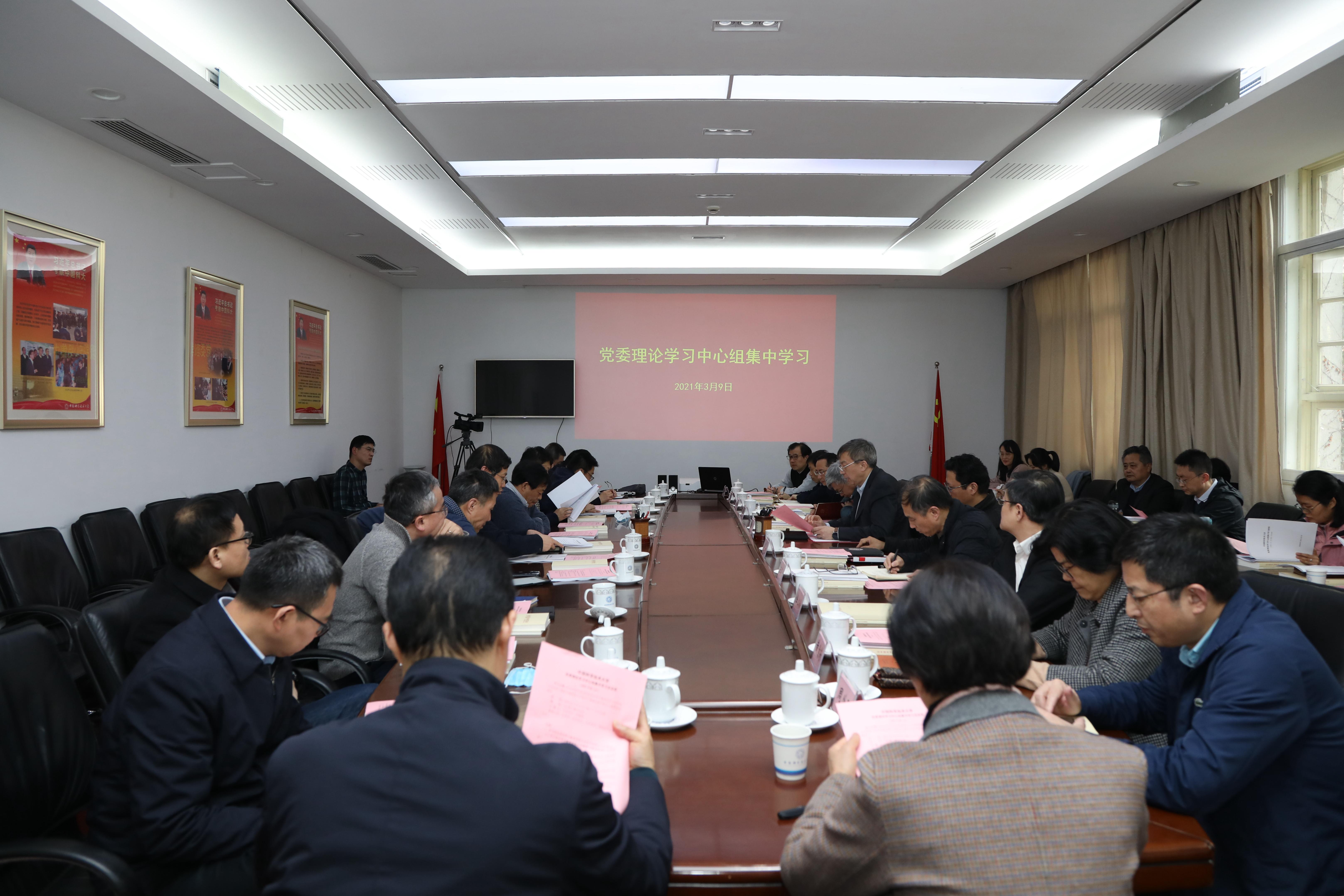 3月9日下午,学校党委理论学习中心组在218楼二楼会议室召开集中学习会,深入学习习近平总书记在党史学习教育动员大会和中央党校(国家行政学院)中青年干部培训班开班式上的重要讲话精神,传达中共中央有关通知精神。会议由党委书记舒歌群主持。在校校领导,党委委员、纪委委员,党群部门主要负责人参加会议。