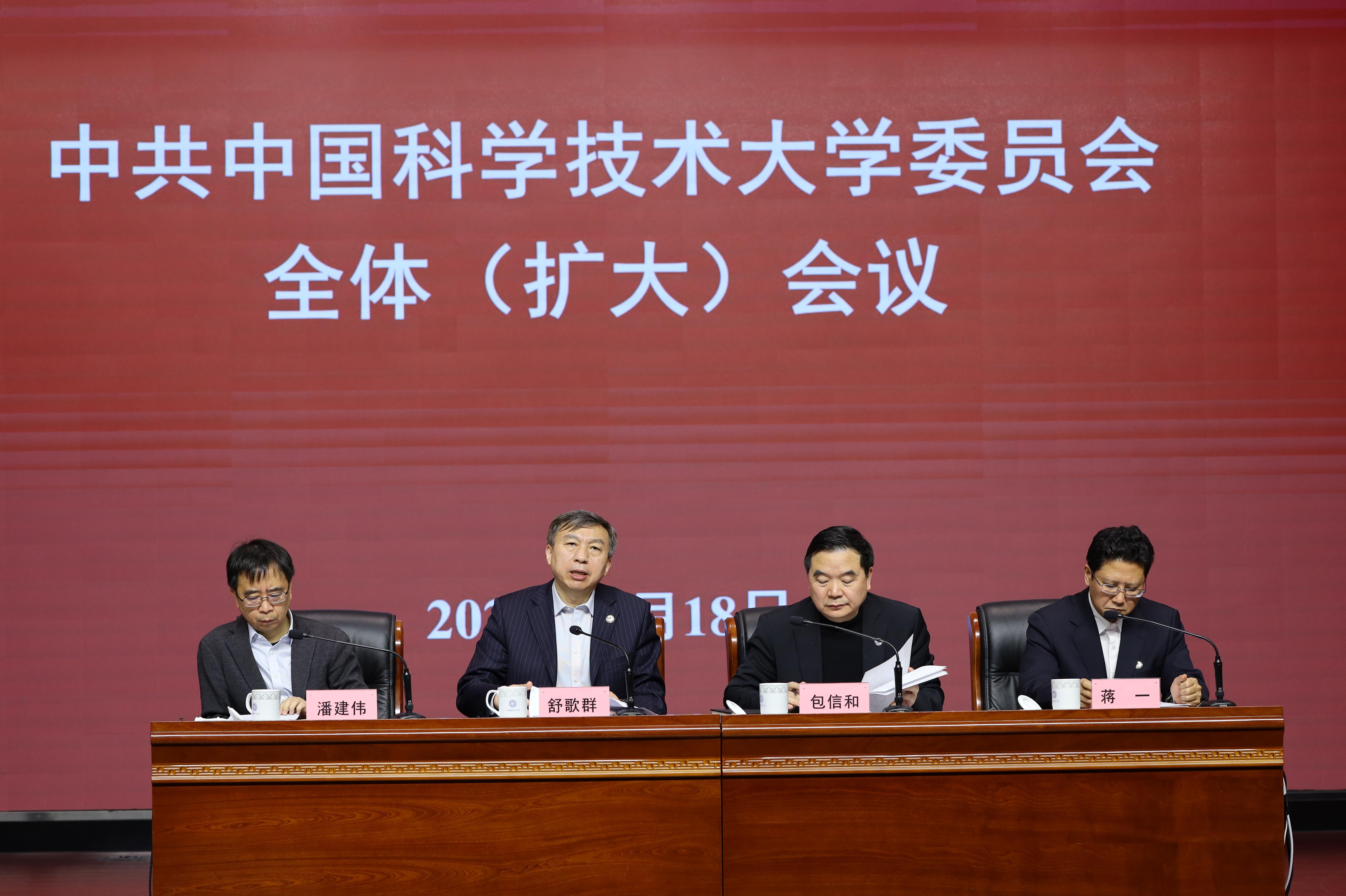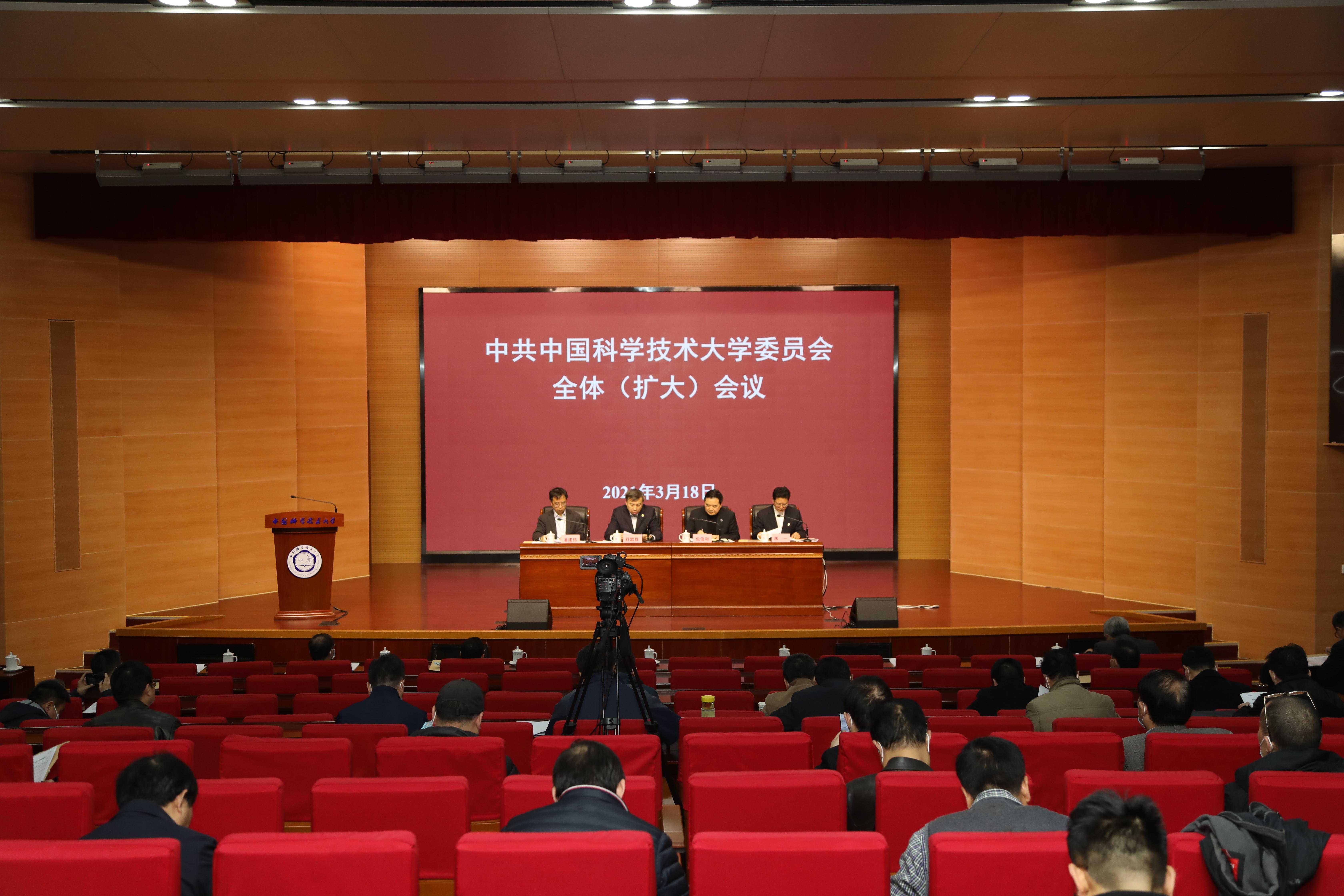 3月18日上午,中共中国科学技术大学委员会全体(扩大)会议在东区水上报告厅召开。会议主要传达“两会”精神,部署学校2021年党政工作要点和全面从严治党工作要点。党委书记舒歌群主持会议。校领导,两院院士,校党委、纪委委员,各学院、重点科研机构、机关各部门、直属单位、附属第一医院中层领导干部,全国、安徽省人大代表、政协委员,各民主党派负责人,教工、学生和附属第一医院党支部书记、全体党务秘书参加大会。会议主会场设在水上报告厅,同时在东区理化大楼东三、西三报告厅,上海研究院和附属第一医院设置分会场视频直播。