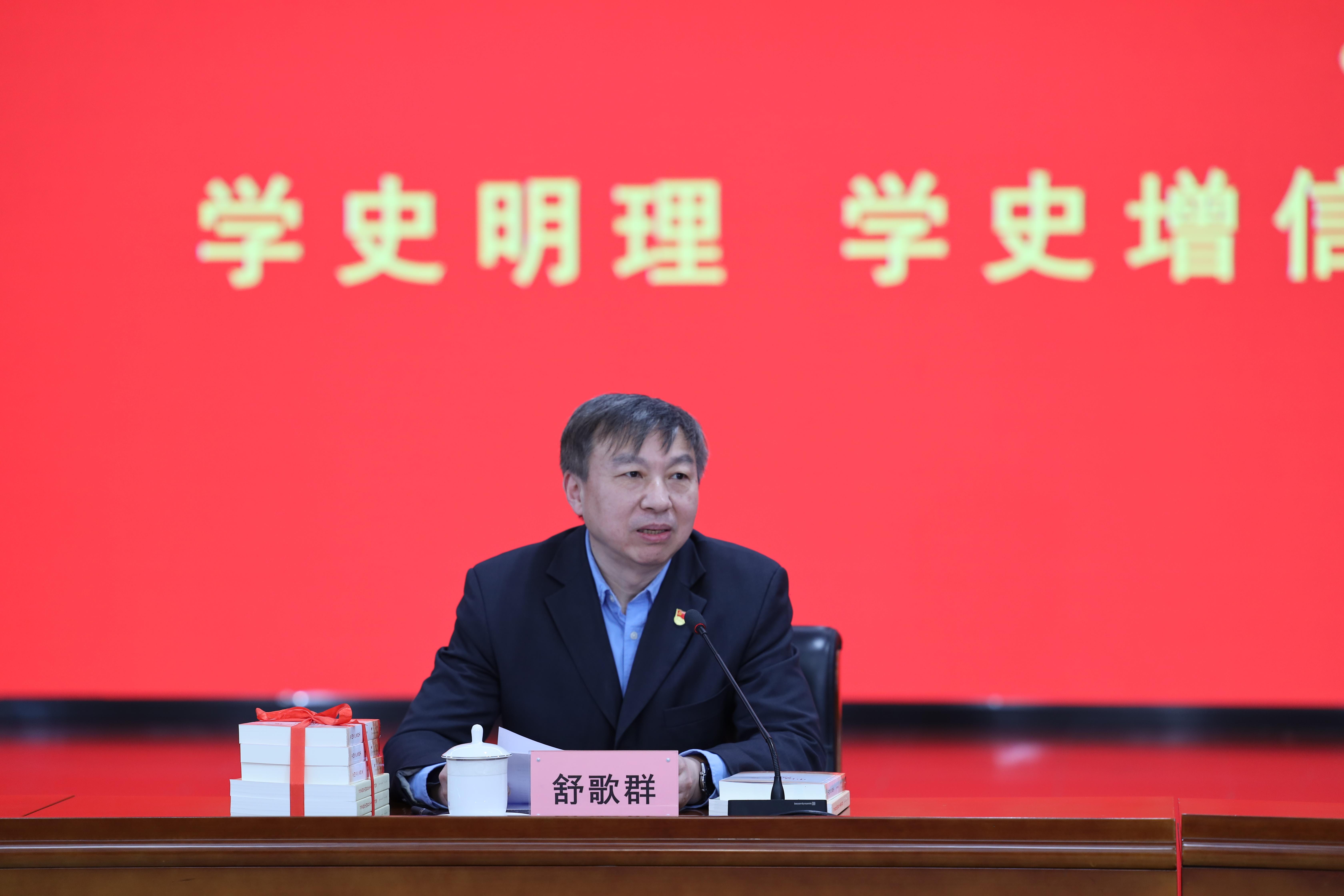 舒歌群在主持座谈会时指出,在全党开展党史学习教育,是党中央立足党的百年历史新起点、统筹中华民族伟大复兴战略全局和世界百年未有之大变局、为动员全党全国满怀信心投身全面建设社会主义现代化国家而作出的重大决策。在党史学习教育活动开展的开始阶段,听取中央宣讲团宣讲将能促进学校进一步把思想和行动统一到以习近平同志为核心的党中央的决策部署上来,进一步高标准、高质量做好党史学习教育工作。全校广大党员干部和师生员工要在党史学习教育中砥砺初心使命、激发实干精神,潜心立德树人、执着攻关创新,奋力开启新阶段建设中国特色、科大风格的世界一流大学新征程。