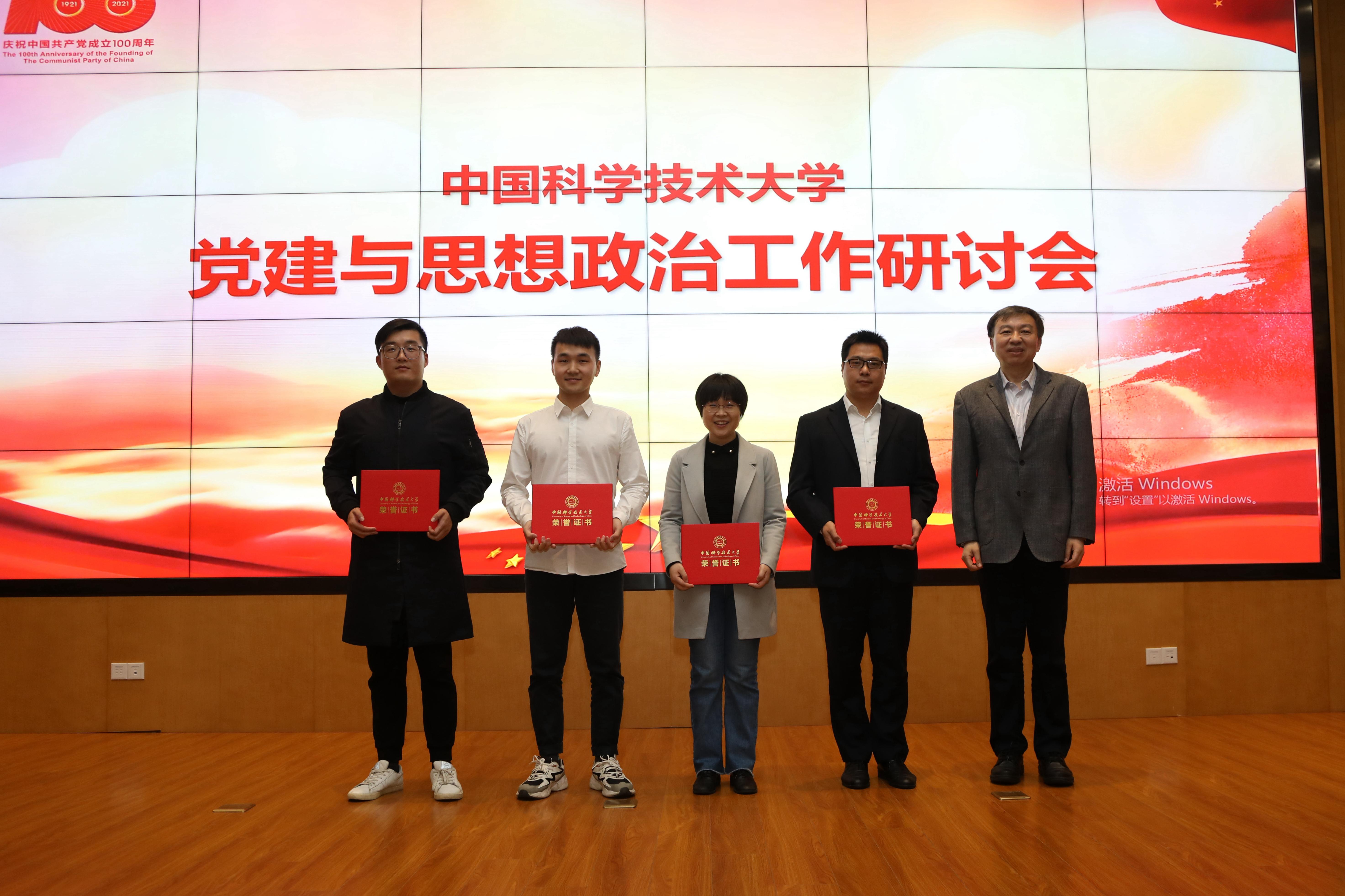舒歌群、朱长飞、褚家如分别为论文获奖作者代表颁发了荣誉证书。经学校党建与思想政治工作研究会理事会会议审议通过,《双立双化,双增双扩,双转双进,双创双引,协同推进中国科大研究生思政课程与课程思政体系建设与机制创新》等8篇研究成果获2018-2020年党建与思想政治工作优秀理论研究成果一等奖,《高校廉洁文化的培育机制研究》等16篇研究成果获二等奖,《数学科学学院课程思政的思考与举措》等30篇研究成果获三等奖。