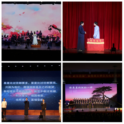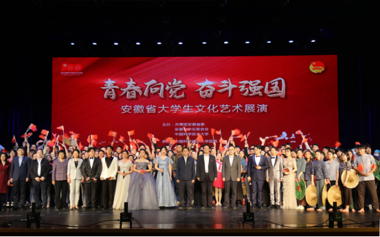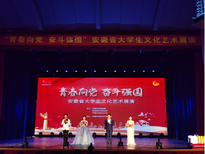 为庆祝中国共产党成立100周年,4月29日,“青春向党·奋斗强国”安徽省大学生文化艺术展演在我校成功举办。校党委常务副书记蒋一,团省委书记杨正,副书记李波、郑兰荣、胡靖,省文旅厅人事处处长、二级巡视员海燕,省文旅厅、省委宣传部、省文明办、省教育厅等部门负责人,校党委宣传部、学工部(处)和团委等部门负责老师与省内1300余名师生现场共同观看了本场展演,同时现场还进行了线上直播,全省广大青年学生共赏这场青春盛会。
