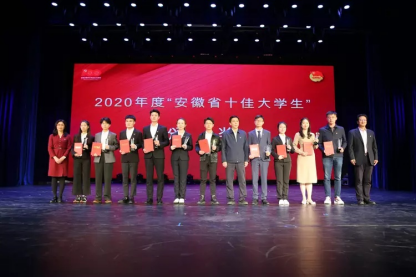 展演现场举办了2020年度“安徽省十佳大学生”颁奖仪式,为张璟鹤等十位同学颁发了证书和奖杯。习近平总书记日前在清华大学考察时说到,广大青年要肩负历史使命,坚定前进信心,立大志、明大德、成大才、担大任,希望广大青年以他们为代表的身边优秀青年为榜样,勇担民族复兴大任的时代新人。