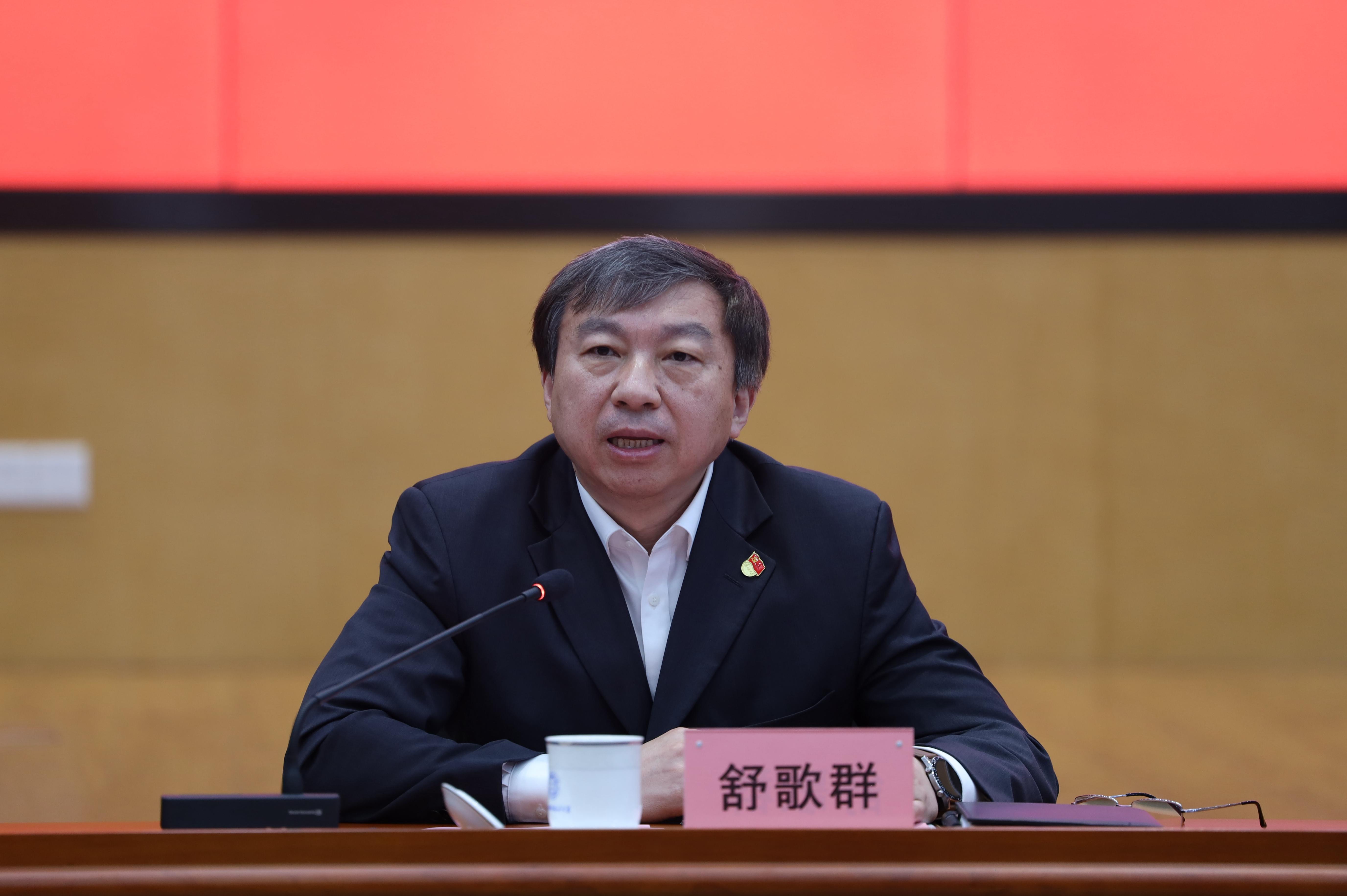 舒歌群对如何进一步深入学习贯彻习近平在考察清华大学时重要讲话精神提出了四点要求。一是要在思想上高度重视,认真学习、深刻领会,继续在学深悟透上下功夫。二是要始终坚持社会主义办学方向,切实加强党的建设,把党的集中统一领导真正落实到办学治校全过程各方面,以一流的党建引领中国特色世界一流大学建设。三是要在行动上积极实践,以“开新局”为目标,努力做到四个结合:和落实习近平总书记关于中国科大系列重要指示精神相结合,统一思想、凝聚共识、形成合力;和落实立德树人根本任务相结合,不断提高人才培养质量;和落实执着攻关创新相结合,打造国家战略科技力量;和落实人才强校主战略相结合,建设高水平的师资队伍。四是要在举措上从实从细,从党的百年历史中汲取智慧和力量,从实际工作出发总结经验、查摆不足,将全面深化改革进行到底。