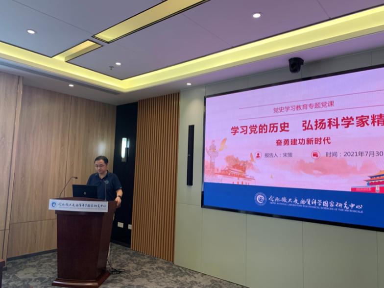 首先,宋策同志为全体党员讲授专题党课——《学习党的历史,弘扬科学家精神》。报告从中国共产党的百年发展历程解读科学家精神的内涵,以丰富的史实阐述自建校以来一代又一代科大人传承和弘扬老一辈科学家精神,无私奉献,攻坚克难,报国为民的奋斗历程。内容深入浅出、内涵丰富,党员同志深受教育。