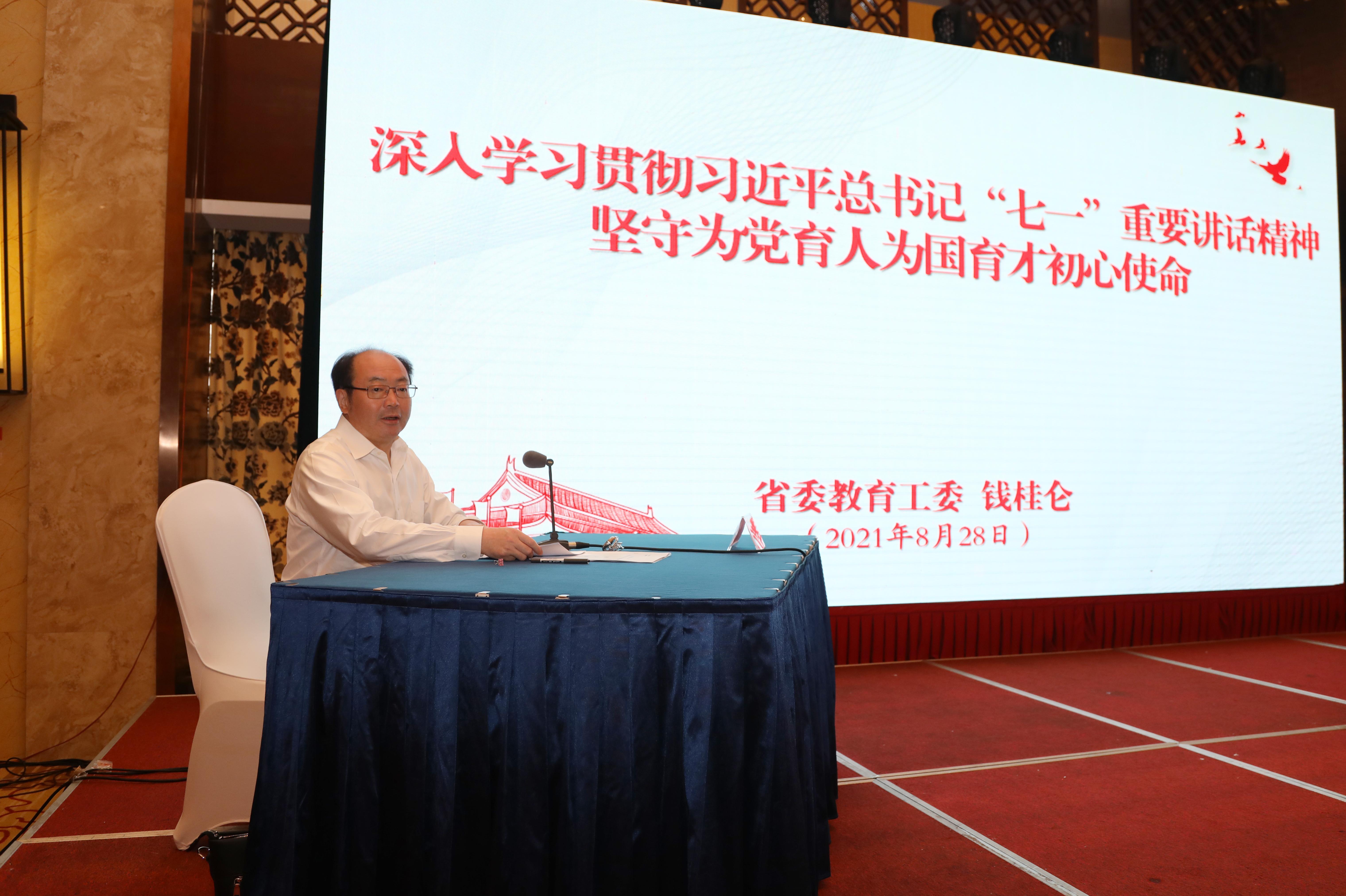 钱桂仑书记受邀作题为《深入学习贯彻习近平总书记“七一”重要讲话精神,坚守为党育人为国育才初心使命》的辅导报告,对党领导教育事业的百年光辉历程进行了深入回顾,结合世情、国情、教情、省情的深刻变化,围绕增强教育自信、建设高质量教育体系的任务,从坚持社会主义教育发展道路、健全立德树人落实机制、构建服务全民终身学习教育体系、全面深化教育领域综合改革、加强党对教育工作的全面领导五个方面作了系统阐述。