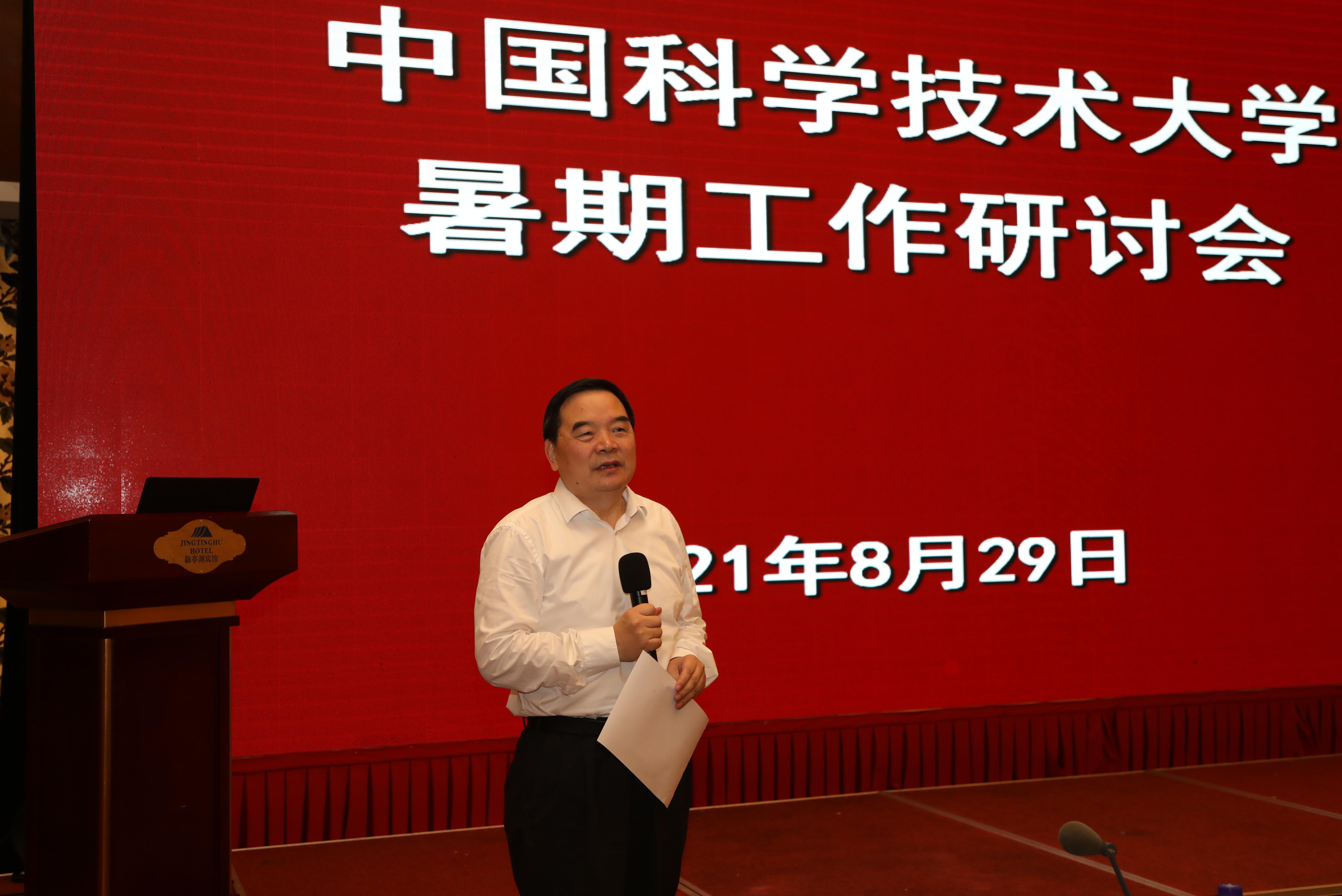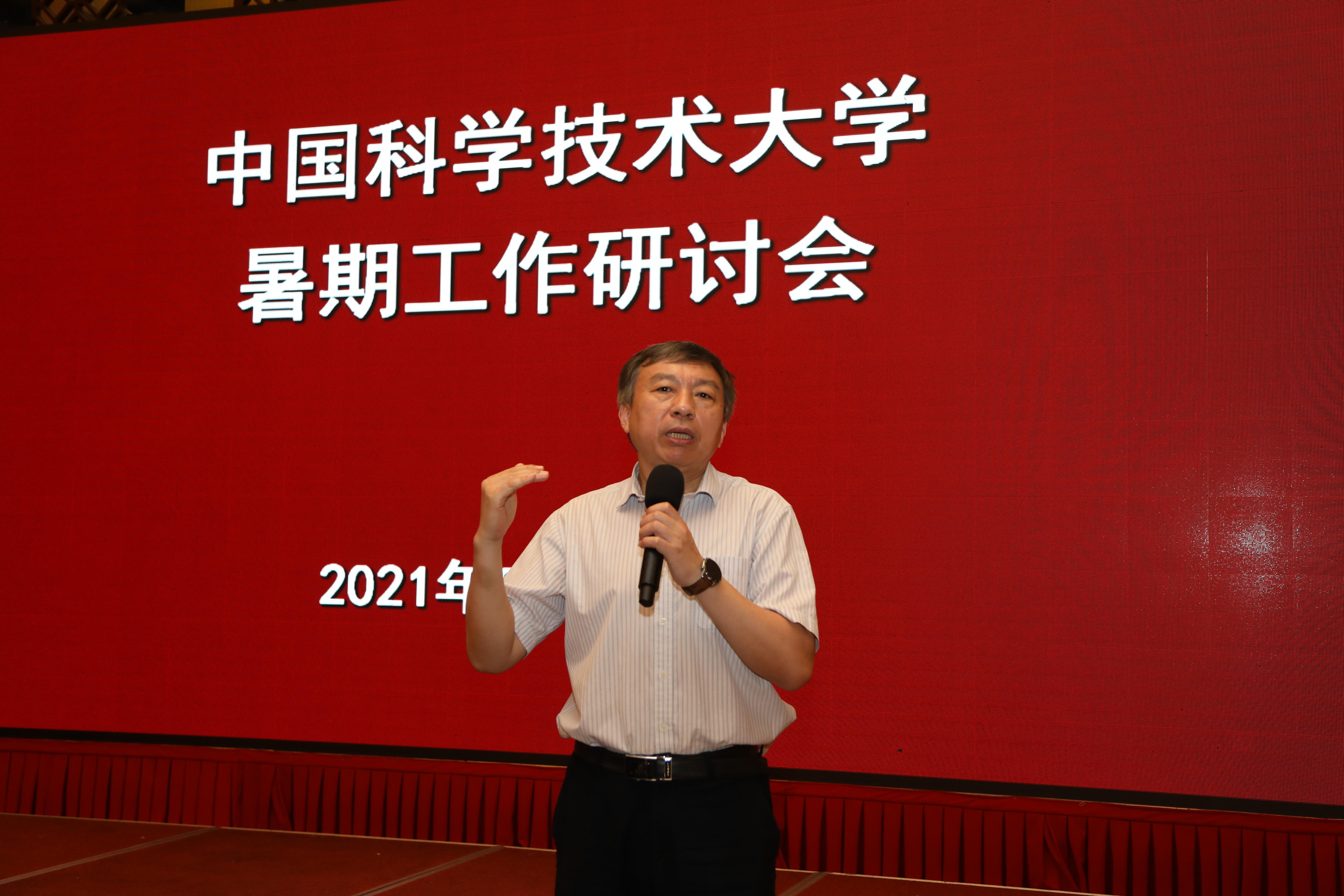 校长包信和在暑期工作研讨会上指出,中国科大要按照习近平总书记的指示要求,立足“两个大局”,心怀“国之大者”,牢记“科教报国、追求卓越”的初心使命,加快建设中国特色、科大风格的世界一流大学。要潜心立德树人,探索卓有成效的人才培养模式,扎实推进“一流本科教育质量提升计划”、“德创”领军人才培养计划等,在教材建设等方面多下功夫,从知识、能力和做人三个层次培养学生,努力培养德智体美劳全面发展的社会主义建设者和接班人。要执着攻关创新,始终加强基础研究,推动交叉学科、创新平台建设,以应用研究推动基础研究发展,营造专心科研的创新氛围。要面向国家重大需求,主动融入长三角一体化发展等国家战略,不断提升社会服务能力,汇聚资源打造“科大硅谷”,积极服务地方经济社会发展。要深化国际合作,探索科教融合的新机制、新模式、新方法。要加强人才队伍建设,提高服务意识,为科研工作者提供施展才华的舞台,让他们创新愉快。要加强校园建设、改善校园环境,进一步提高学校基础设施水平,努力形成一流标准的大学园区。