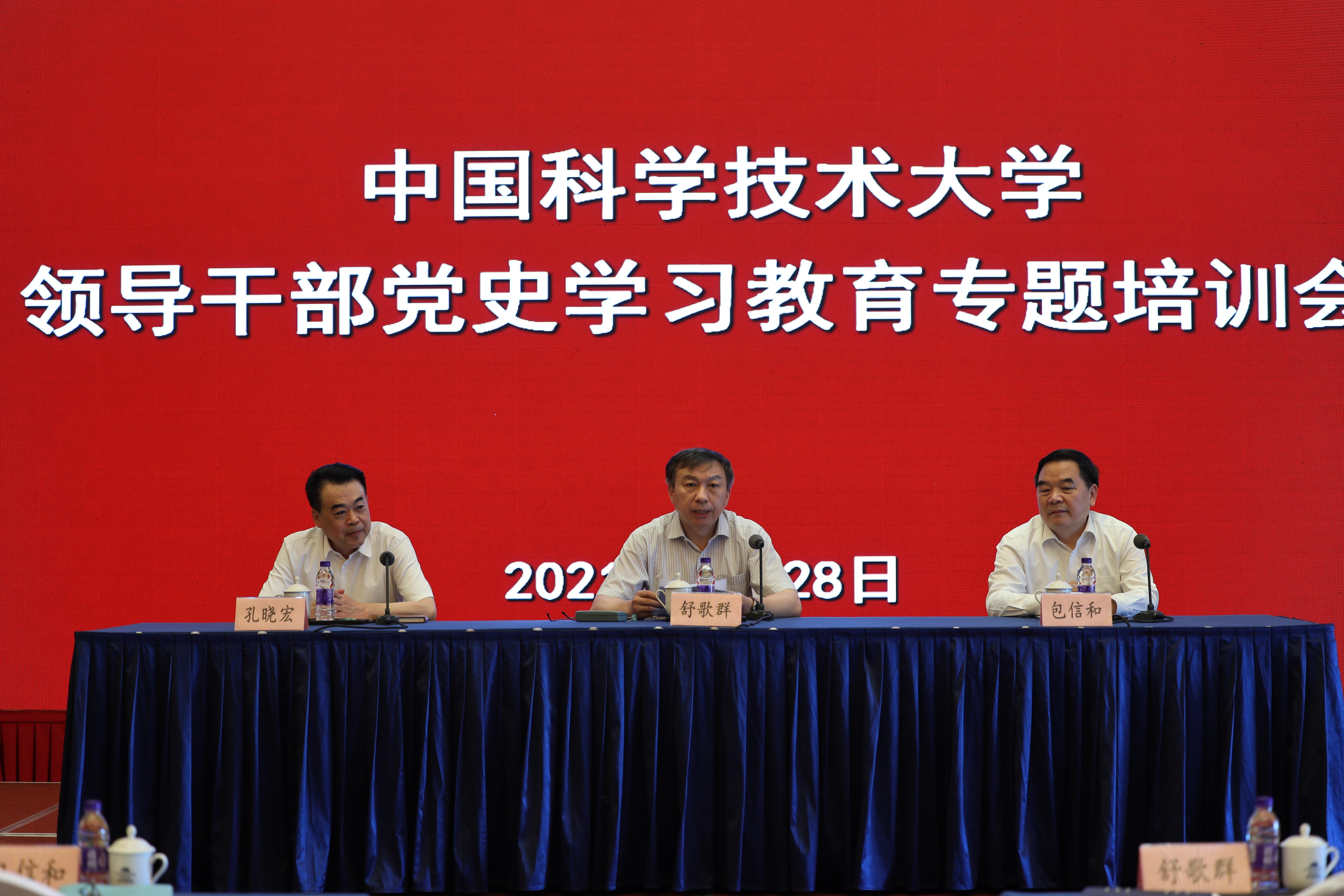 8月28日至30日,中国科学技术大学在宣城市举办领导干部党史学习教育专题培训班。校党委书记舒歌群作开班动员讲话。校领导包信和、蒋一、朱长飞、王晓平、杨金龙、杜江峰、毕金初、罗喜胜、傅尧、黄素芳、褚家如、周丛照,赵政国院士、田志刚院士参加培训。宣城市委书记孔晓宏出席开班式并致辞。
