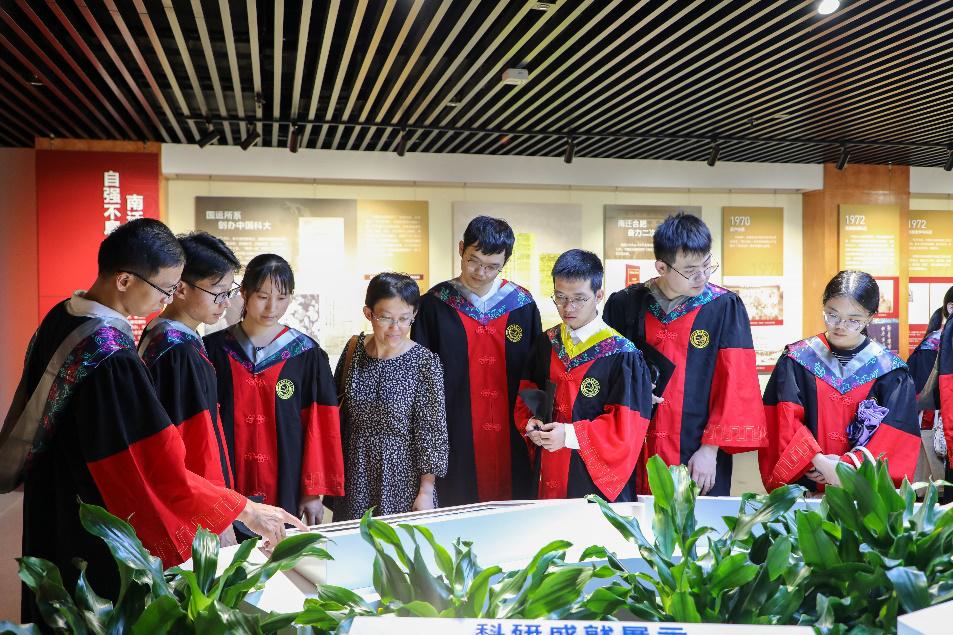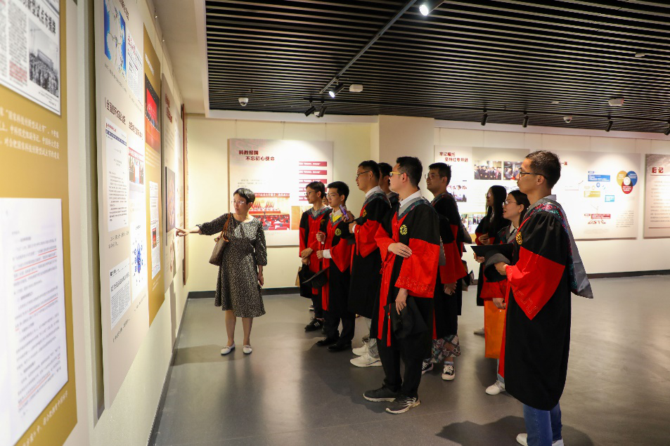 合影之后,合肥微尺度物质科学国家研究中心党委副书记孙梅带领毕业生参观学习了中国科大在合肥50年建设成就展、中国科大与“两弹一星”纪念展。同学们纷纷表示,通过此次参观学习,更加深刻感受到中国科大“科教报国、追求卓越”的初心使命,老一辈革命家、科学家的创业艰辛,未来将时刻牢记并力行“两弹一星”精神,从中汲取前进力量。