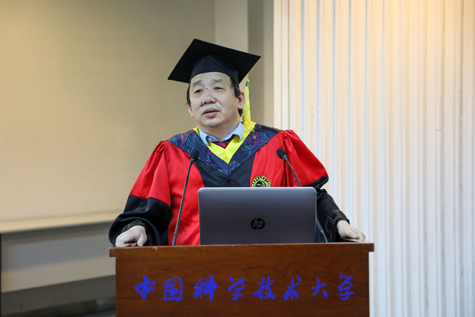 仪式上,合肥微尺度物质科学国家研究中心党委书记、副主任王兵带领毕业生庄严宣誓:“感恩父母养育,感谢导师教诲,不忘母校培养。我们坚守母校信念,热爱科学、崇尚真理;我们传承母校精神,科教报国、追求卓越。我们用激情和智慧建设祖国,用责任和行动回馈社会,用成就和硕果回报母校。”