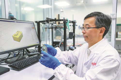 院士在精密制备实验室构思仿生热防护材料的结构设计方案。