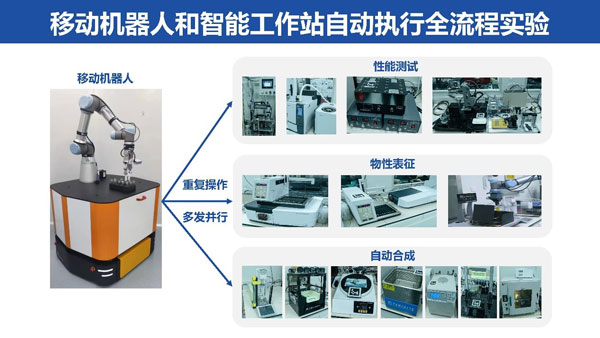 图2 移动机器人和智能工作站完成高通量合成、表征、测试的化学实验全流程