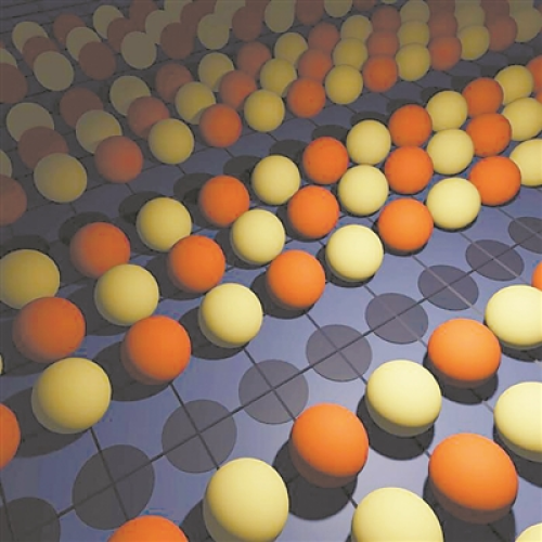 与哈伯德模型类似的棋盘格上的彩色球。图片来源:美国西蒙斯基金会