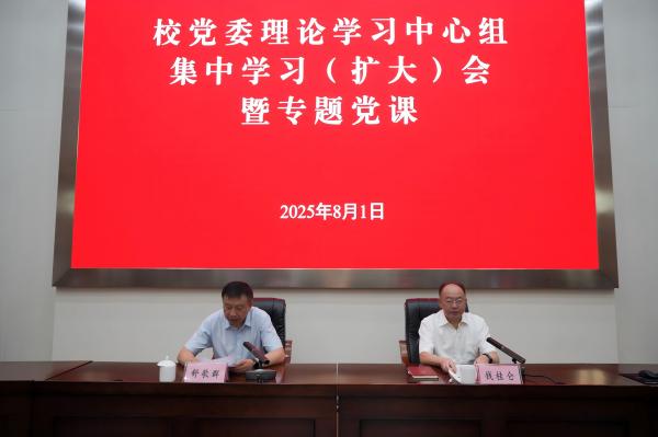 8月1日上午,校党委理论学习中心组集中学习(扩大)会暨专题党课报告会在滁州市委党校举行。安徽省委教育工委书记、省教育厅厅长钱桂仑以《潜心立德树人 执着攻关创新 奋力建设中国特色世界一流大学》为题,为学校领导干部作专题党课报告。校党委书记舒歌群主持报告会,校长、党委副书记常进等校领导出席报告会。