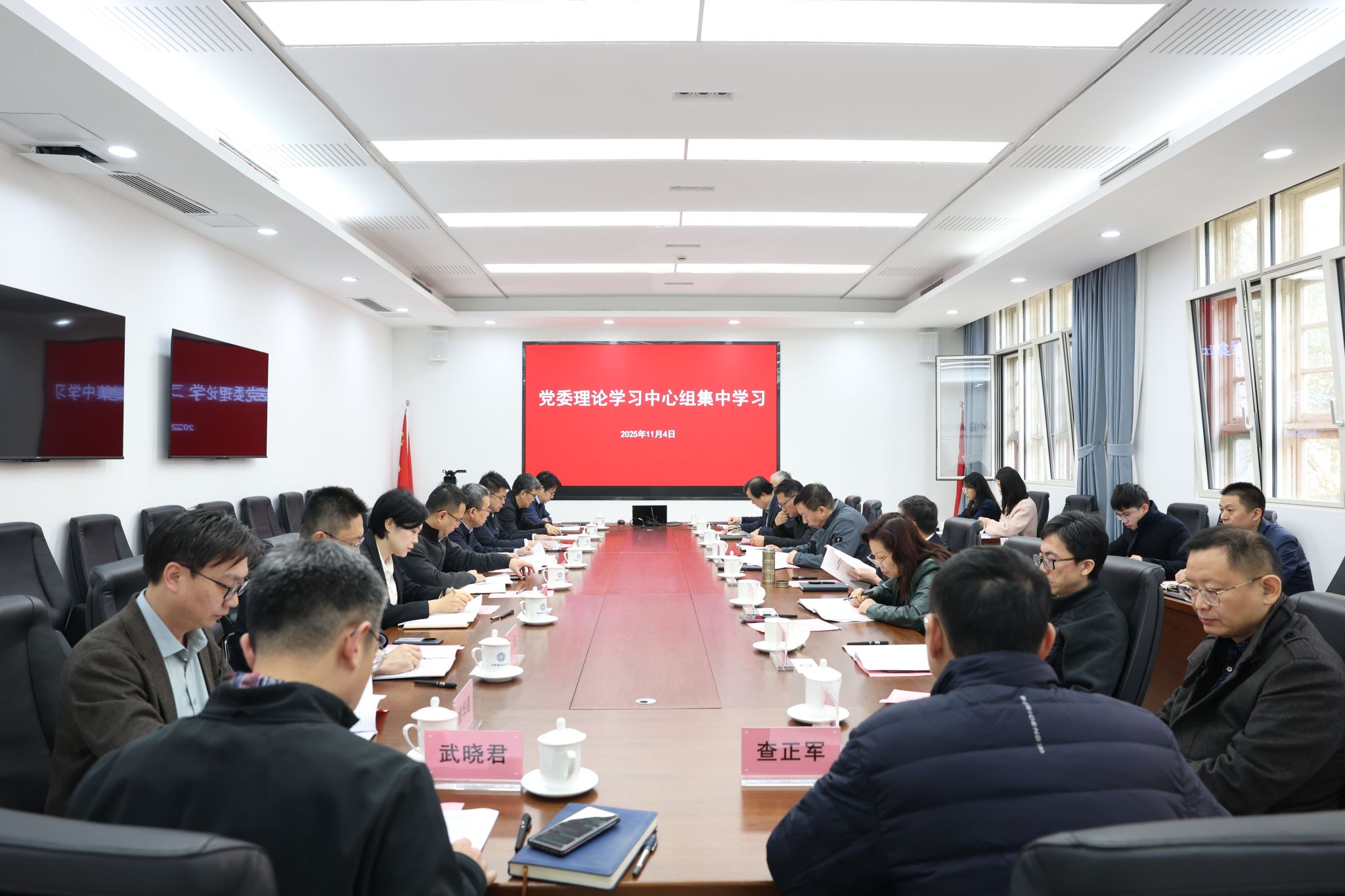 11月4日上午,校党委理论学习中心组在东校区218楼二楼会议室召开集中学习会,专题学习习近平总书记关于《中共中央关于制定国民经济和社会发展第十五个五年规划的建议》的说明和《中共中央关于制定国民经济和社会发展第十五个五年规划的建议》。校党委书记舒歌群主持会议,校长常进等在校校领导,党委工作部门主要负责人,学校“十五五”规划各组牵头部门主要负责人参加会议。