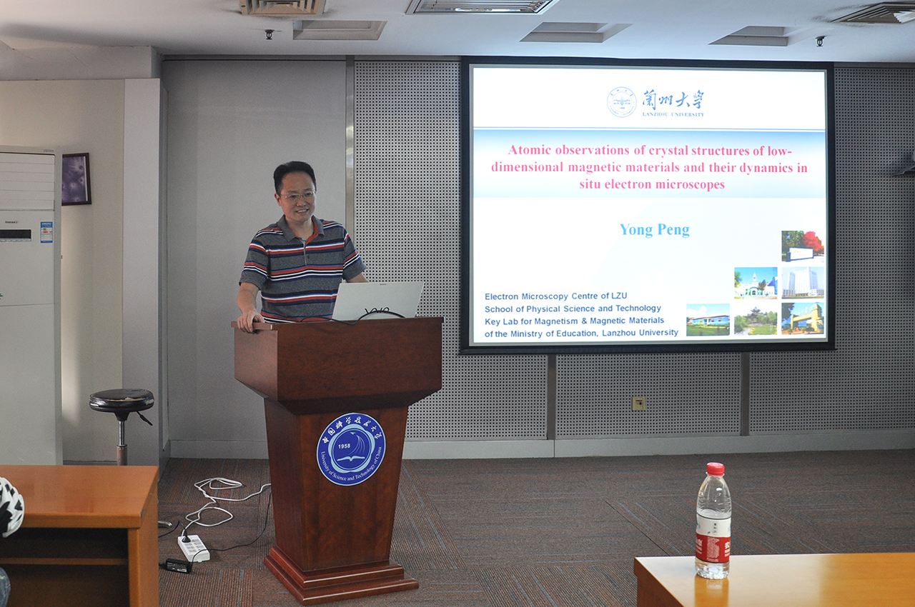 应林岳博士的邀请,10月15日,兰州大学彭勇教授来研究中心进行学术交流与访问,并为师生们作题为“低维磁性单体的微结构及其电镜原位磁化动力学研究”的学术报告。